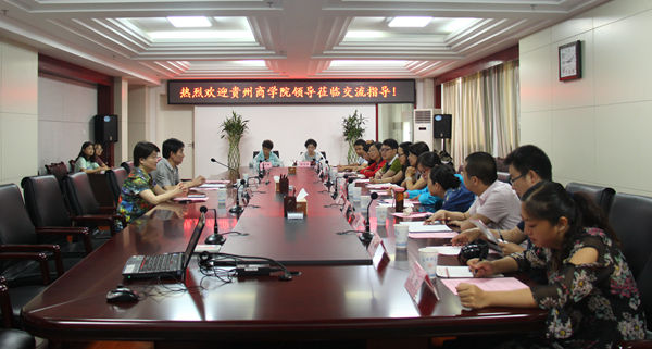 7月3日,贵州商学院教务处副处长蔺琛、实践中心副主任梁勇等一行15人来我校调研交流。我校党委委员、宣传统战部部长刘樟树在行政楼九楼东会议室热情接待了来宾。