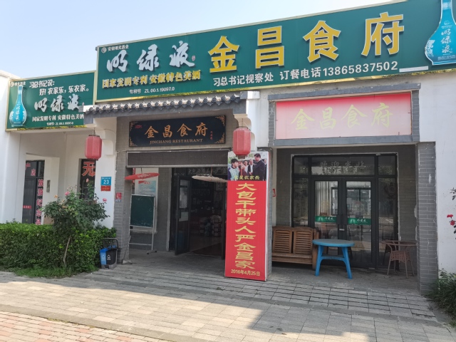 接着,调研人员来到了小岗村友谊大道旁的金昌食府。在夏日骄阳的照射下,习近平总书记视察这里的讲话“好!农家乐,乐农家”7个字闪闪发光,随后调研人员采访到大包干带头人代表严金昌老人。严金昌老人说道:“在改革开放后的四十多年来,在中国共产党好政策的指引下,小岗村制定了‘三步走’的发展战略:即发展现代农业,搞科学种植和农产品加工;发展旅游业,建立大包干纪念馆;招商引资办工业,建成工业园区对农产品深加工。从此,我们小岗村人民吃不愁、穿不愁、家家户户小洋楼,而且户户能进城,家家都有私家车。”