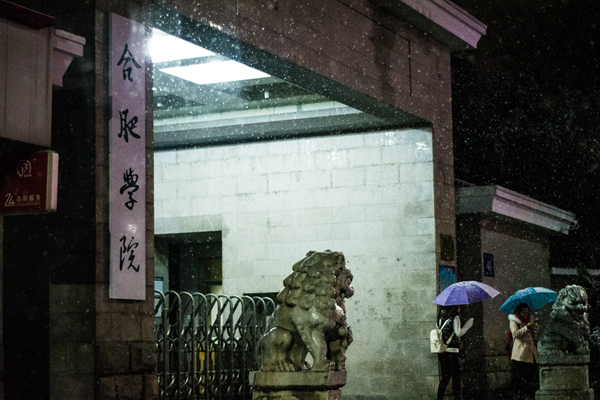 斜风、细雨、飞雪、灯光、人影,静谧和谐地编织着合肥学院校园的冬夜。落雪无声梦无痕,最美不过读书人。