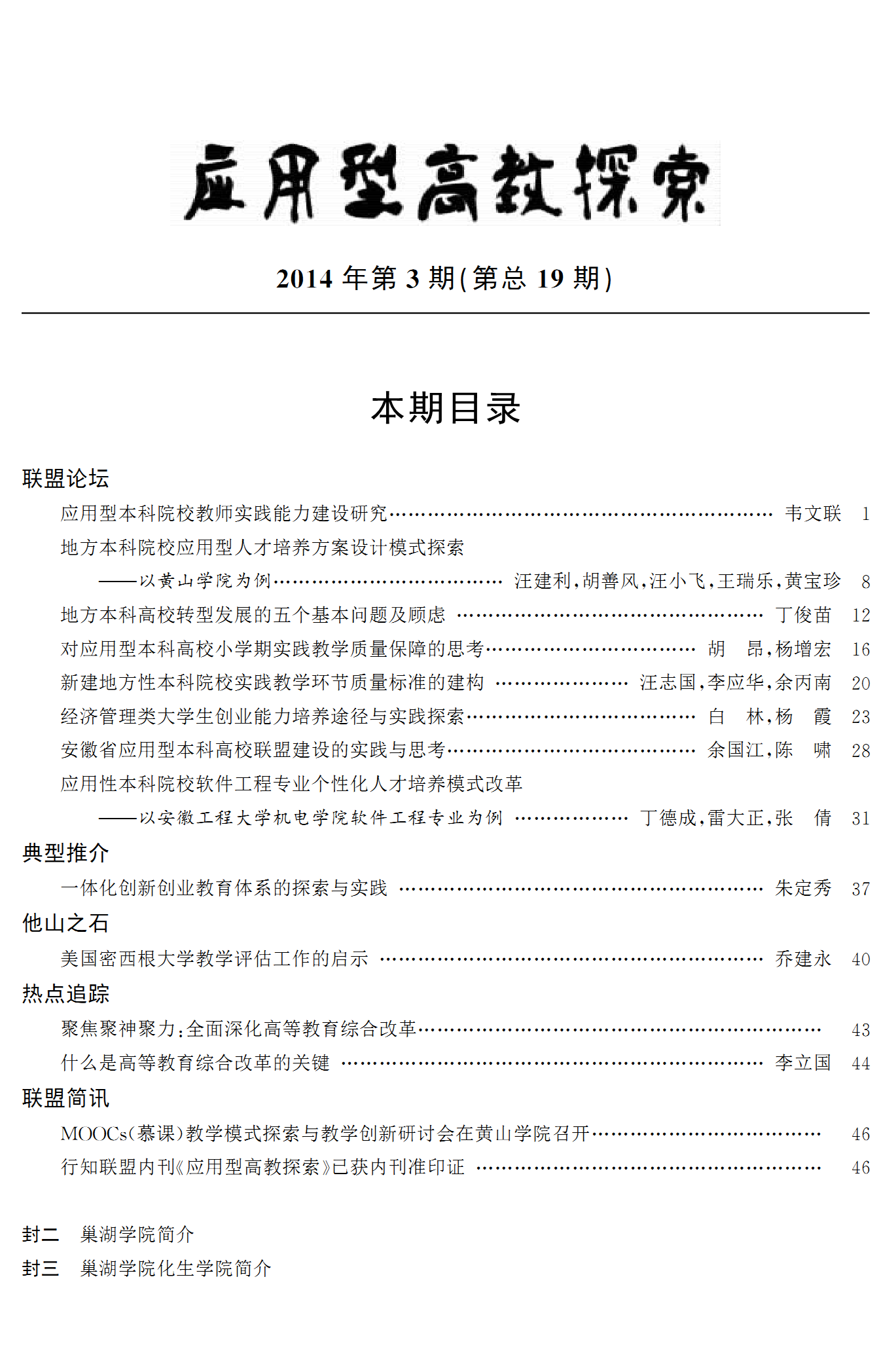 本期是由联盟高校巢湖学院协办,典型推介栏目介绍的是该校“一体化创新创业教育体系的探索与实践”。