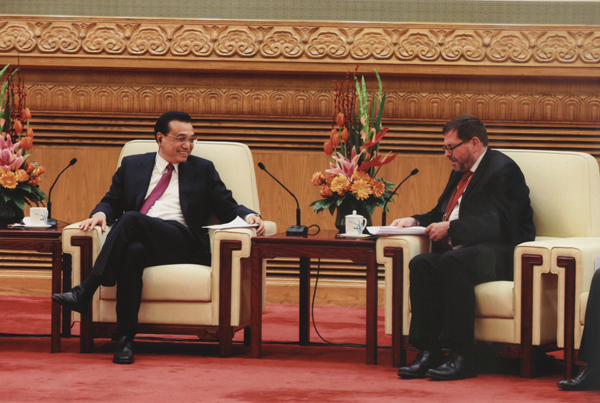 国务院总理李克强2月5日下午在人民大会堂亲切会见在华工作的部分外国专家并同他们座谈。我校客座教授、德国施特拉尔松德应用科学大学校长法尔克·霍恩、我校韩籍教授赵诚惠、朴南奎夫妇,作为在皖外国专家代表出席了座谈,其中霍恩教授作为仅有的四位发言代表之一,重点就“中国制造2025”与“应用型高等教育改革”作了发言,并就我校“中德教育合作示范基地”筹建情况作了简要汇报。